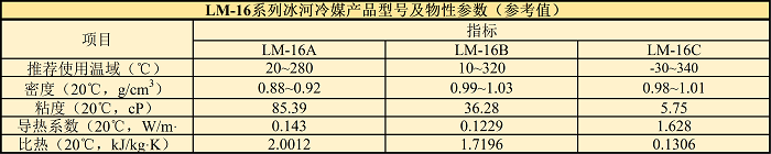 LM-16系列冰河冷媒由合成型碳氢化合物改性而成,结构稳定,热稳定好。外观为无色或浅色液体,不溶于水,闭口闪点均在120℃以上,安全性高。具有加热均匀、调温控制准确、传热效果好、节能、输送和操作方便等特点,可应用于医药、化工、光热新能源、石油天然气等领域。